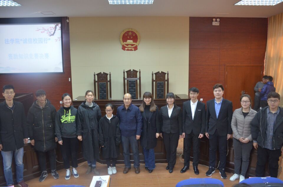为进一步增强学生诚信意识,创新学生诚信教育模式,yl23455永利官网于11月30日在院三楼模拟法庭举办了“诚信校园行”资助知识竞赛决赛。院党委副书记牛华男,院党委办公室主任、资助服务站站长姜妍,本科生2016级辅导员翟文博担任比赛评委。