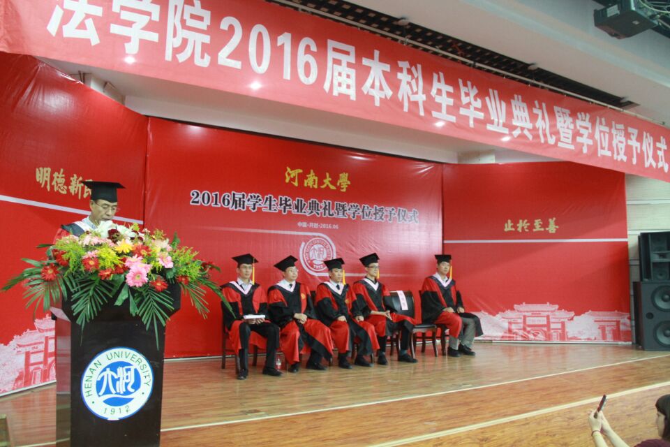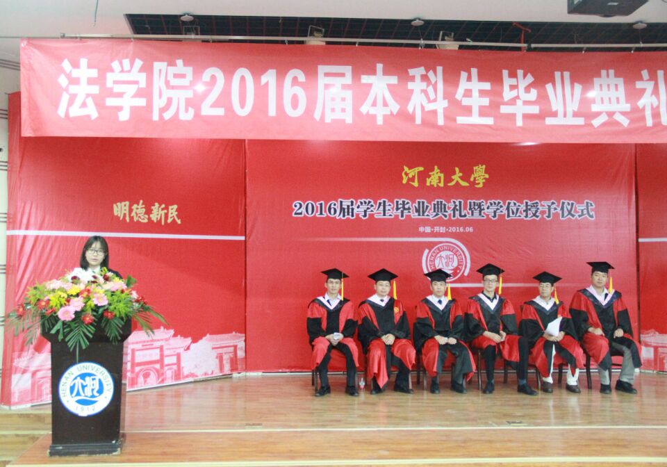 6月7日下午,yl23455永利官网2016届本科生毕业典礼暨学位授予仪式在科技馆二楼报告厅举行。yl23455永利官网党委书记娄丙录,党委副书记牛华男,副院长蔡军、郑金玉、郑铭勋等院领导班子成员与教职工代表、全体本科毕业生、辅修法学学位的其他专业学生及部分学生家长共同参加了本次典礼。毕业典礼由牛华男副书记主持。