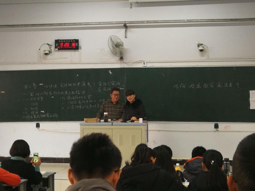 2017年12月4日是我国第四个宪法日,王俊峰老师在宪法学课堂上提出为何设定国家宪法日的问题,同学们用所学专业知识从多方面表达了自己的见解。之后,学生代表走上讲台,分享入学三个月以来学习法律知识的所思所感。最后,辅导员姜妍老师讲到,作为新时代的法科生,一个未来的法律人,我们应该用大学四年的时间去思考这个问题:新形势下法学专业的大学生在未来应该担负什么样的责任,我们在大学四年里要紧跟时代脚步,与国家社会一同成长,要有所学,学好我们的专业知识,在踏入社会以后要有所为,以自己所学的知识服务社会。