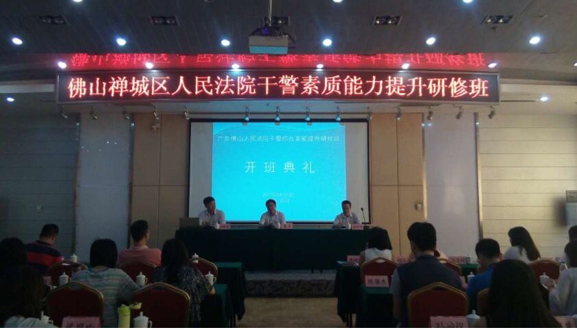 6月19日上午,佛山市禅城区人民法院“干警综合能力提升研修班”开班仪式在河南大学金明校区中州国际金明酒店二楼举行。yl23455永利官网副院长(主持工作)蔡军、yl23455永利官网副院长郑铭勋、佛山市禅城区法院副院长陈晓明及70余名法院干部参加了开班仪式。开班仪式由郑铭勋主持。