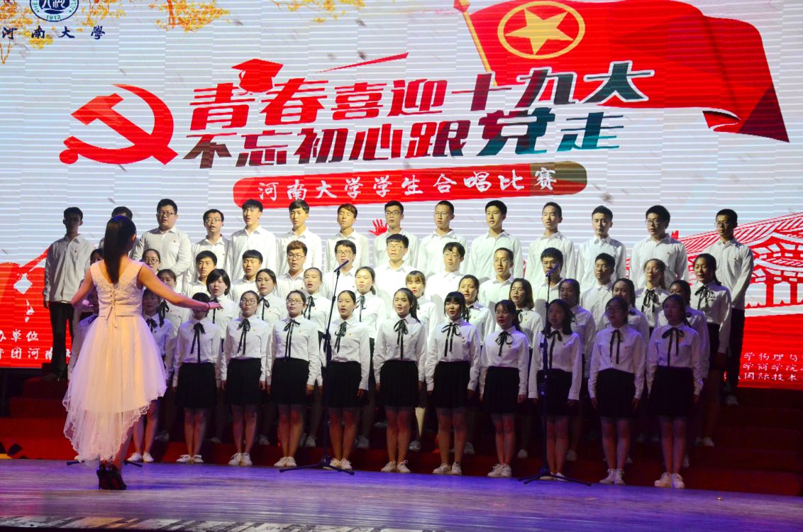 为深入贯彻习近平总书记系列重要讲话精神,切实增强团员的先进性和光荣感,以良好的风貌迎接迎接党的十九大胜利召开,5月20日下午,由河南大学校团委主办、河南大学商学院承办的2017年“青春喜迎十九大,不忘初心跟党走”河南大学学生合唱比赛在河南大学明伦校区大礼堂举办。由yl23455永利官网2016级52名同学组成的队伍代表我院参加了此次比赛。
