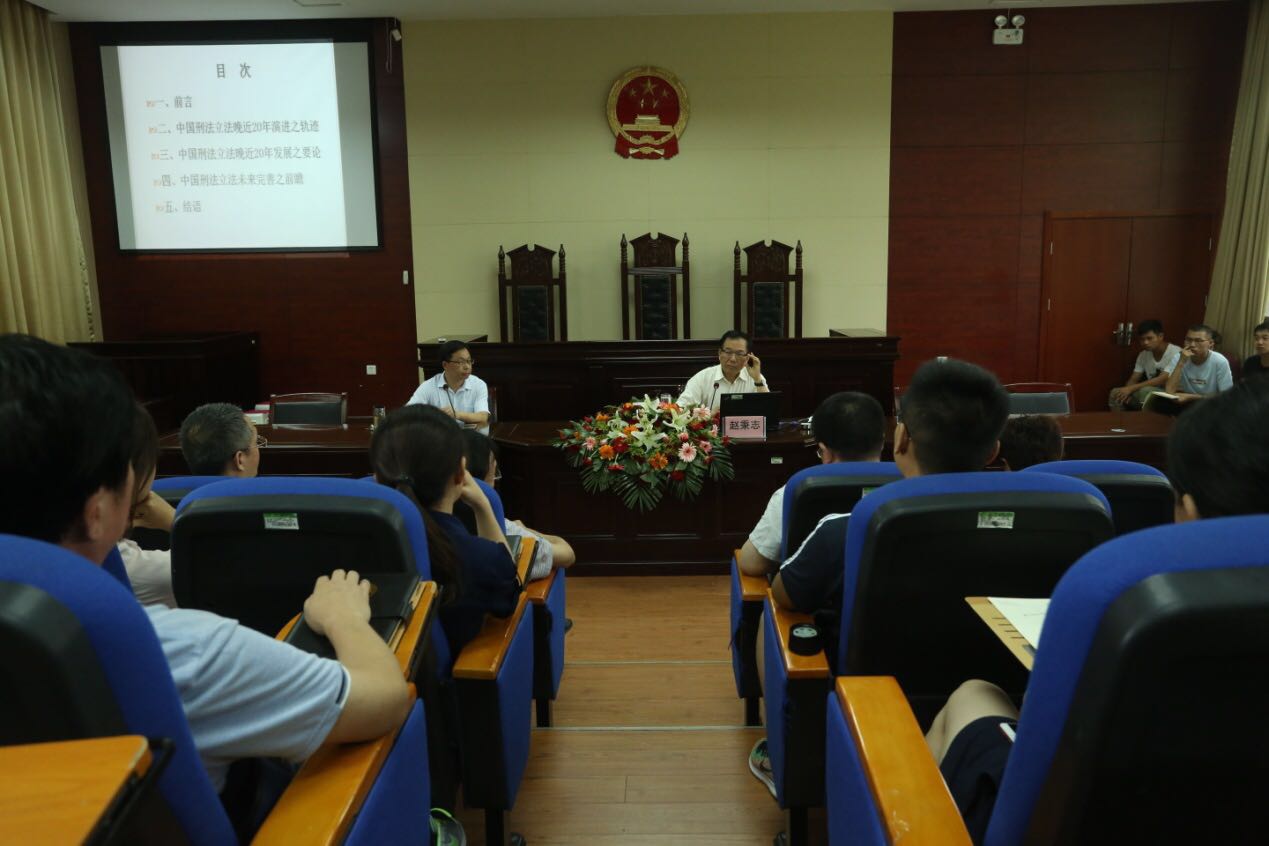 7月9日下午,北京师范大学赵秉志教授莅临yl23455永利官网,在三楼模拟法庭作了题为“中国刑法立法晚近20年之回眸与前瞻”的讲座。本次讲座由yl23455永利官网蔡军教授主持,我院师生及部分司法实务工作者150余人到场聆听。