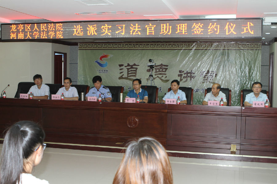 为共同实施实习法官助理制度,6月28日上午,我院与开封市龙亭区人民法院举行了首批实习法官助理签约仪式。蔡军副院长、牛华男副书记、郑金玉副院长、郑铭勋副院长、曹新华博士,龙亭区人民法院郑永强常务副院长、党组副书记宋付振、党组成员、纪检组长霍建国,龙亭区人民法院部分干警以及我院准备签约的17位研究生、高年级本科生参加了仪式。