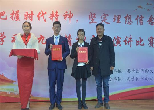 学习贯彻党的十九大精神,培养有理想、有本领、有担当的新一代青年,11月23日下午,由共青团河南大学委员会主办、共青团yl23455永利官网委员会承办的“把握时代精神,坚定理想信念”主题演讲比赛决赛在科技楼二楼举行。