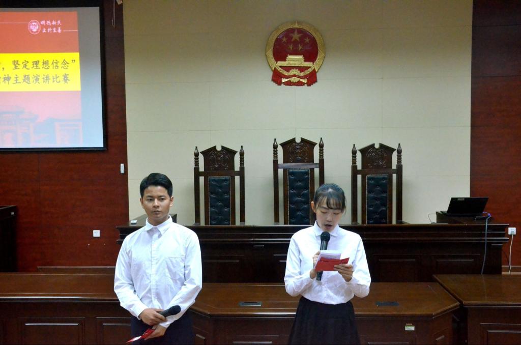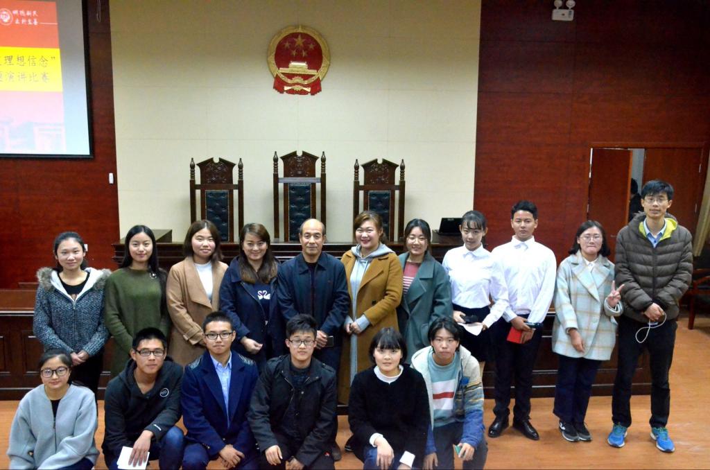 深入学习贯彻党的十九大精神,培养有理想、有本领,有担当的新一代青年,11月16日下午,由河南大学校团委主办、yl23455永利官网承办的“把握时代精神,坚定理想信念”主题演讲比赛yl23455永利官网赛区初赛在yl23455永利官网三楼模拟法庭举办。yl23455永利官网党委副书记牛华男、团委书记石宇珺及各年级辅导员担任评委。
