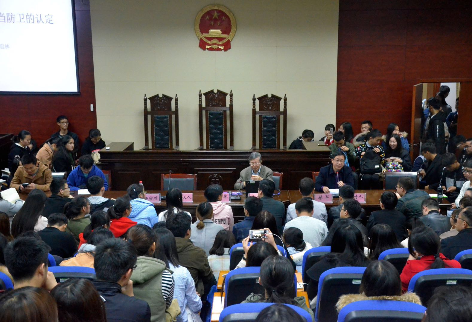 11月16日晚,重庆大学yl23455永利官网院长陈忠林教授莅临yl23455永利官网讲学,在三楼模拟法庭作了题为“从于欢案谈正当防卫的认定”的讲座。本次讲座由yl23455永利官网副院长(主持工作)蔡军教授主持,刑法学教授郝守才担任评议人,yl23455永利官网部分师生到场聆听。