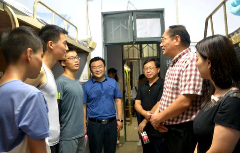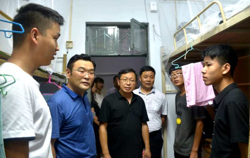 9月2日下午,yl23455永利官网党委书记王桂,院长蔡军,副院长郑金玉、赵树宏、李亮及学工队伍全体成员到学生公寓看望2018级新生。