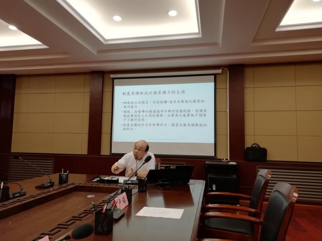 2019年5月12日上午,在学院二楼第一会议室,“比较视野中的国家、法律与社会”系列讲座开讲。日本大阪经济法科大学伍跃教授、北京大学历史系黄春高教授受邀进行学术讲座。讲座由法律史学科牵头人杨松涛副教授主持,法律史学科郭志祥教授、经济学院彭凯翔教授、以及学院研究生和本科生参加讲座活动。
