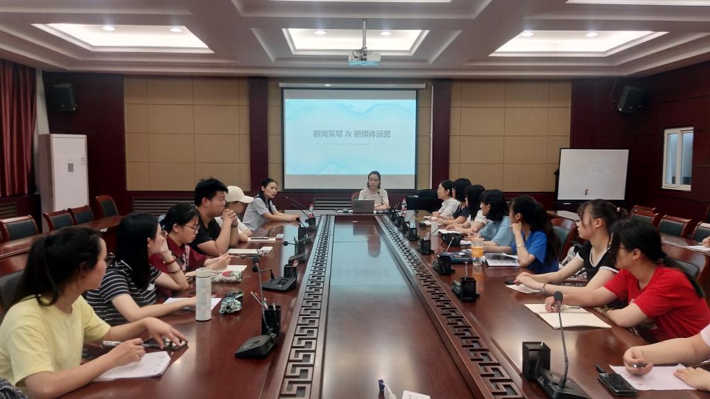 为提高新闻采写能力、提升新媒体运营水平,5月26日下午,我院新媒体中心在学院二楼第一会议室举行技能培训会。本次培训由河南大学新闻与传播学院2017届硕士生贾媛媛主讲。学院党委副书记吴瑷瑷、团委书记石宇珺出席会议,新媒体中心全体成员到场聆听。
