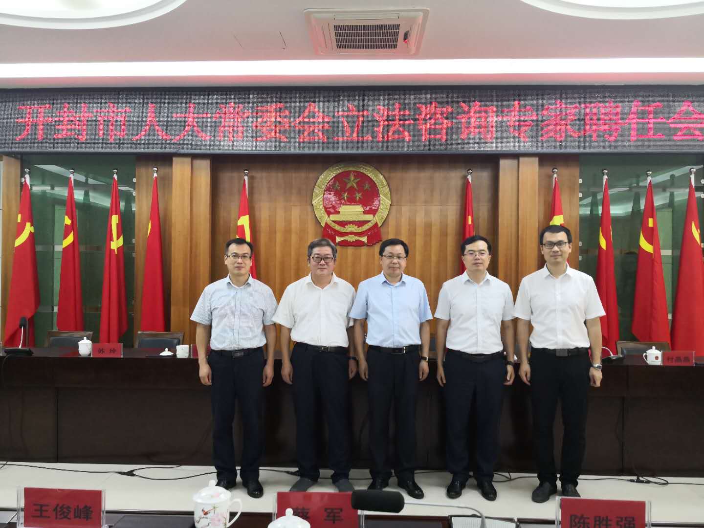 2019年7月5日下午,开封市人大常委会在市人大办公楼一楼多功能会议厅召开立法咨询专家聘任会。市人大常委会副主任徐强向来自法学和法律实务、城乡建设与管理、环境保护、历史文化保护等不同领域的44位立法咨询专家颁发了聘书。在我院推荐基础上,经市人大常委会公开遴选和市人大常委会主任会议审议,我院院长蔡军教授、王俊峰副教授、陈胜强副教授、王利副教授、岳红强副教授、刘夏副教授等六位教师被聘为开封市第十五届人大常委会立法咨询专家。