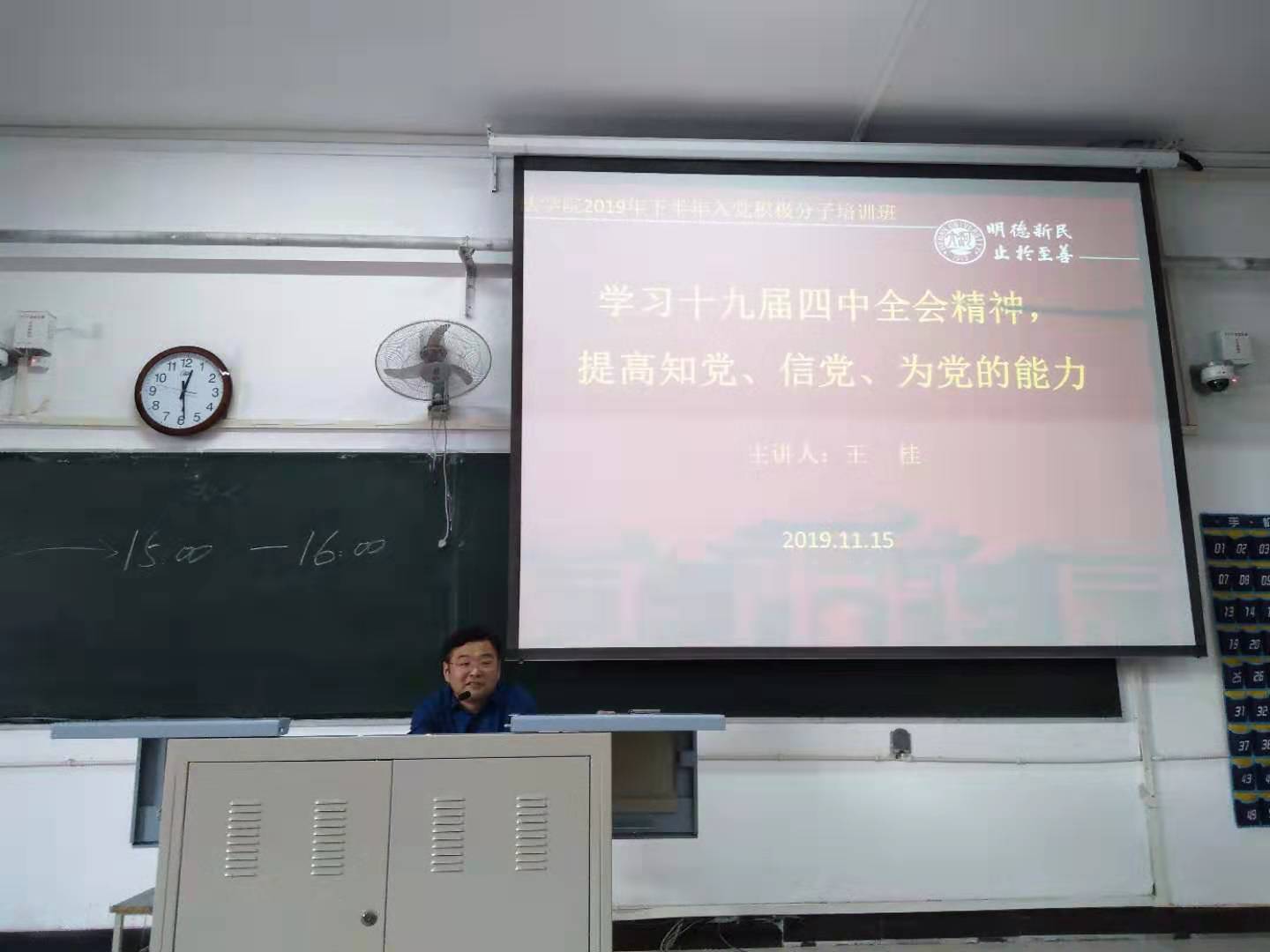 为严把党员队伍“入口关”,走好发展党员工作的“最先一公里”,帮助入党积极分子“扣好第一粒扣子”,打造信仰信念信心的“补给站”,按照《中国共产党发展党员工作细则》和学院党委工作安排,11月11日至15日,yl23455永利官网举办2019年下半年入党积极分子培训班。
