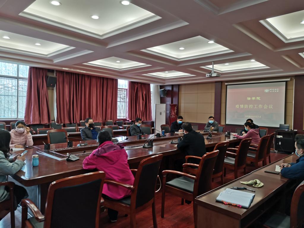 王桂同志传达了学校近期疫情防控所做的工作。他强调,一是围绕学校提出的“五个精准”,把师生健康情况排查到位,把师生出行情况跟踪到位;二是要按照学校要求进一步细化实化工作方案,把可能的情况考虑周全,把工作方案设计科学;三是实行网格化管理,建立多级防控联系网络,安排好责任人,随时发现,随时报告;四是统筹兼顾,提升网上教学质量,改进思想政治工作的针对性和时效性。