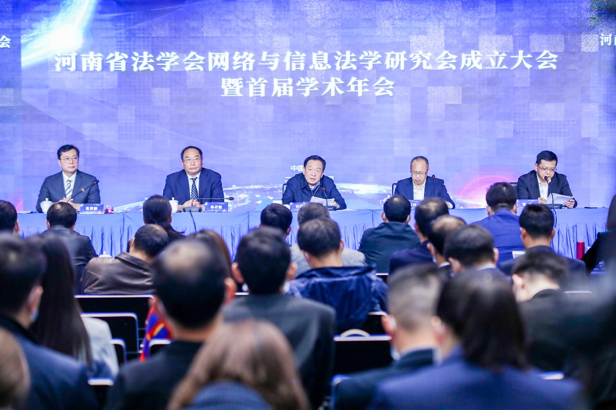 2021年10月9日,河南省法学会网络与信息法学研究会成立大会暨首届学术年会在郑州举行。本次会议由河南省法学会主办,河南大学、河南广播电视台、河南金盾信安检测评估中心有限公司承办,省人大法制委员会副主任委员、省法学会常务副会长沈庆怀,省委政法委二级巡视员、省法学会副会长兼秘书长雷忠旺,省法学会副会长、我校党委常委、副校长孙君健,河南金盾信安检测评估中心有限公司董事长梁宏,以及来自我省主要高校、主流媒体、政法机关、党委、政府相关职能部门、网络安全和数字产业界技术界、律师系统的专家学者200余人出席会议。