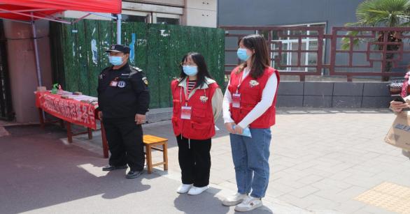 5月15日,学院党委副书记吴瑷瑷带领辅导员孙晓芳、朱真真、翟文博、赵亚楠在校外仁和公寓分段值守。烈日炎炎,坚守依旧,他们身穿红色马甲,为没有佩戴口罩的学生发放口罩,一遍遍提醒学生做好防护。值班人员牺牲周末休息时间,全天候投入到值守工作中,筑起了疫情防控的坚实堤坝。