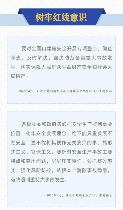 党的十八大以来,习近平总书记对防灾减灾救灾工作多次发表重要讲话,作出重要部署,强调要坚持人民至上、生命至上,始终把保障人民群众生命财产安全放在第一位,不断健全防范化解重大风险体制机制,加快构建抵御自然灾害防线,全面提高重大自然灾害抗御能力。切实减轻灾害风险,直接关系人民群众生命安全,关系经济社会安全,是共享全面小康硕果、守护美好家园的重要基石。要加强工作组织领导,加大宣传解读,教育和提醒社会各界牢固树立底线思维和风险意识,坚持问题导向,坚持关口前移,加强自然灾害防治能力建设,加大灾害风险隐患排查整治力度,从源头上防范和化解安全风险,真正把问题解决在萌芽之时、成灾之前,持续筑牢安全发展基础,为迎接党的二十大胜利召开营造安全稳定环境。