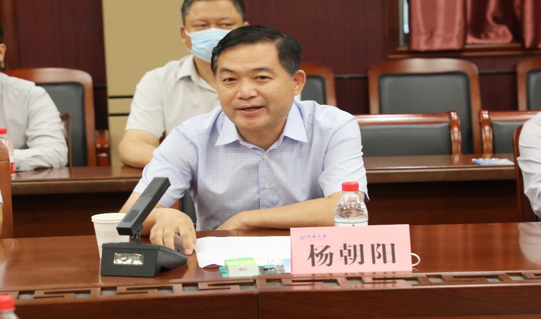 在签约揭牌仪式上,杨朝阳代表河南大学致辞。杨朝阳对河南大学的历史发展、当下“双一流高校”建设的基本情况作了简要介绍。他表示,通过双方共建地方立法研究中心,可以充分发挥河南大学作为综合性高校的学科优势、人才优势与平台优势,有效发挥专家学者对立法的智力支持作用,为河南大学师生提供宝贵的实践机会,在立法实践中发现问题、总结经验、创新理论、培养人才,推动地方立法理论与实践深度融合,切实提升相关领域的学术研究能力与学科建设水平。希望双方依托这一平台,进一步加强沟通联系,形成有序化、常态化、高效化的合作机制,产出高质量立法研究成果,共同打造市校市合作的标杆和高校服务地方的样板。