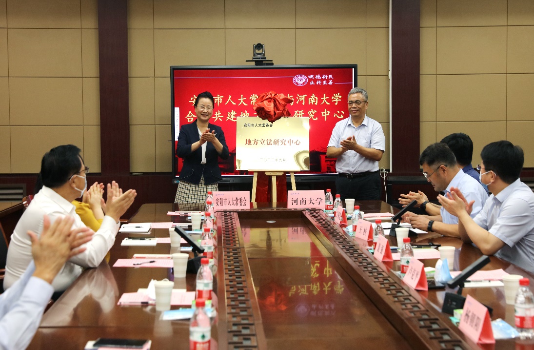 在学校即将迎来110周年校庆之际,河南大学与安阳市人大常委会成立的地方立法研究中心是河南大学推动校市合作,充分发挥河南大学在地方立法中的专业人才优势和思想智库作用的重要举措。河南大学将以习近平法治思想为指导,进一步加强地方立法理论研究、立法决策论证咨询和高素质立法人才培养,为地方立法工作提供强有力的智力支撑。