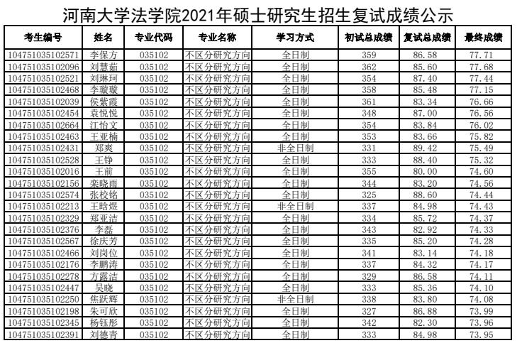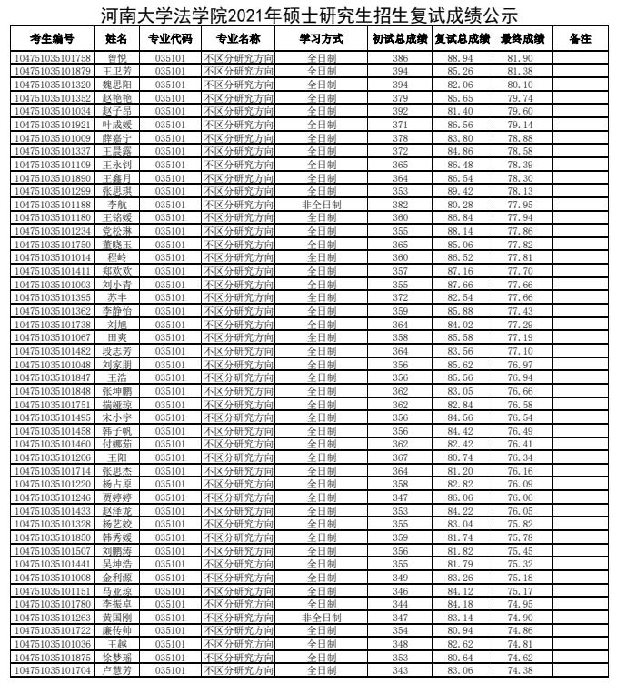 按照学校要求,现将我院2021年研究生复试结果公示如下: