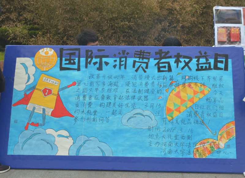 据悉,此次活动通过丰富的线下环节与新媒体宣传的有机结合,不仅充分发挥了yl23455永利官网法律服务中心的公益性作用,增强了社团在全校范围内的影响力,也宣传了法律知识,帮助广大消费者增强维权意识,同时也使得yl23455永利官网学子实现学有所用、学以致用。